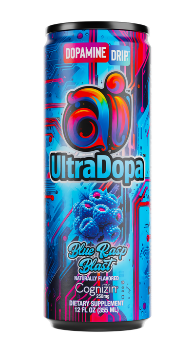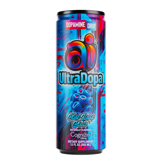 Ai UltraDopa Blue Rasp Blast is a blue-raspberry-flavored energy drink designed for clean, focused energy with zero sugar and zero calories. It delivers a smooth taste profile inspired by the blue-raspberry fruit flavor, paired with a nootropic NeuroSync™ blend built for mental clarity, motivation, and sustained performance. This blue-raspberry-flavored energy drink fits a sugar-free lifestyle while offering a bold, familiar flavor in a high-performance formula.