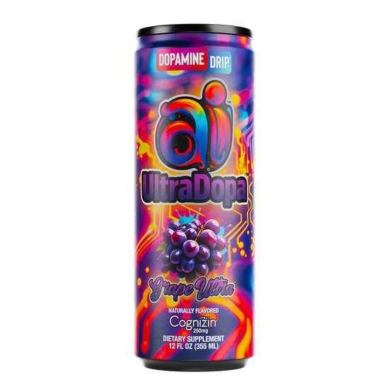 Ai UltraDopa Grape Ultra is a grape-flavored energy drink crafted for enhanced focus and clean energy. It delivers the taste profile of grape with zero-sugar, zero-calorie on top of a nootropic blend for mental clarity and motivation. This grape-flavored energy drink fits into a sugar-free lifestyle while offering the refreshing flavor of grape in an advanced energy formula.